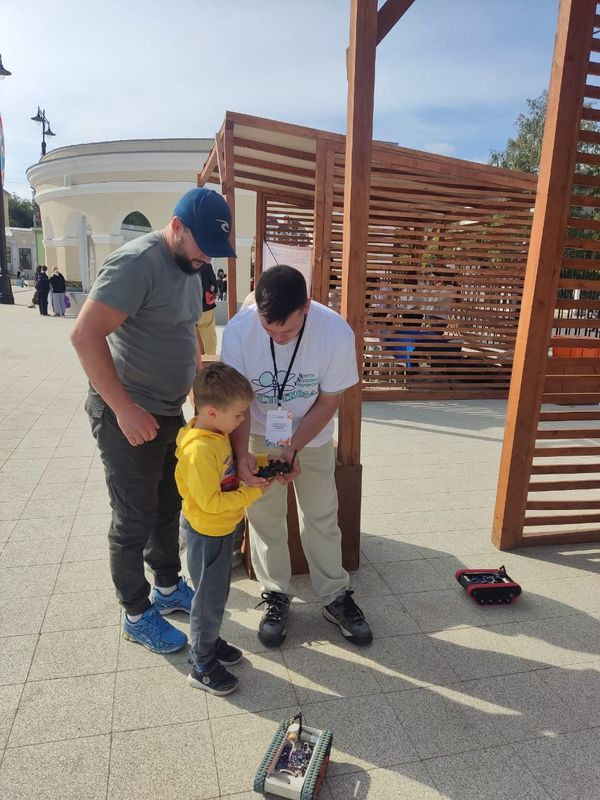 ЦДТ «Стрекоза» принимали участие в площадке «Технотрек». Дети могли посмотреть модели и аппараты, выполненные на 3D-принтере, полностью самостоятельно изготовленные танки, которыми можно управлять с помощью радиопультов. Педагог дополнительного образования К.В. Бабунов рассказывал о роботехнике и помогал маленьким детям с управлением танками.