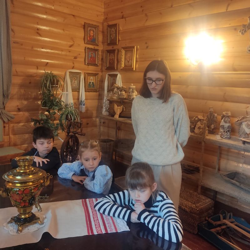 Обучающиеся объединения «Этика и культура поведения» посетили увлекательную экскурсию «Русская изба», которая позволила ребятам окунуться в атмосферу старинного крестьянского быта. Юные экскурсанты увидели предметы, которыми пользовались в быту и узнали их историю – прялка, корыто, сундук, деревянные ложки и другие атрибуты домашнего хозяйства. С большим интересом ребята слушали о народных промыслах Рязанского края – шиловское лозоплетение, михайловское кружево, скопинская керамика. Это путешествие стало не просто экскурсией, а настоящим погружением в мир русской культуры.